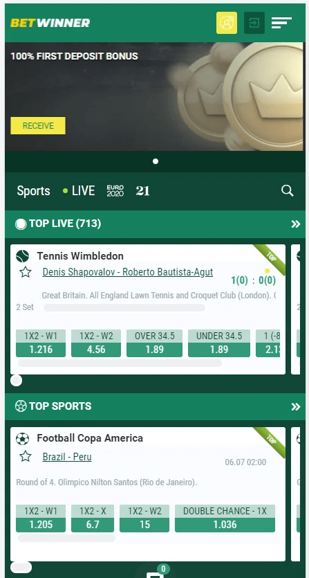 মোবাইল অ্যাপটি প্রতিদিন ৫০+ খেলাধুলার ১০০০+ ম্যাচের একটি বিশাল পরিসর উপস্থাপন করে। আপনার জীবনকে আরও উন্নত করার জন্য, বেটউইনার অ্যাপটিকে চৌকষ এবং স্বজ্ঞাত হিসেবে তৈরি করা হয়েছে। তাই আপনি আপনার বাজি খেলা দ্রুত এবং ঝামেলাহীনভাবে সম্পন্ন করতে পারেন।